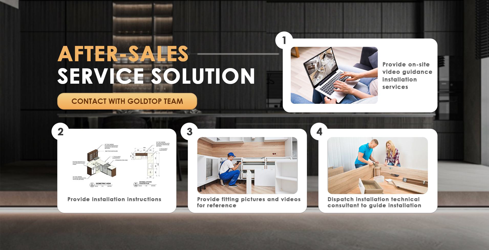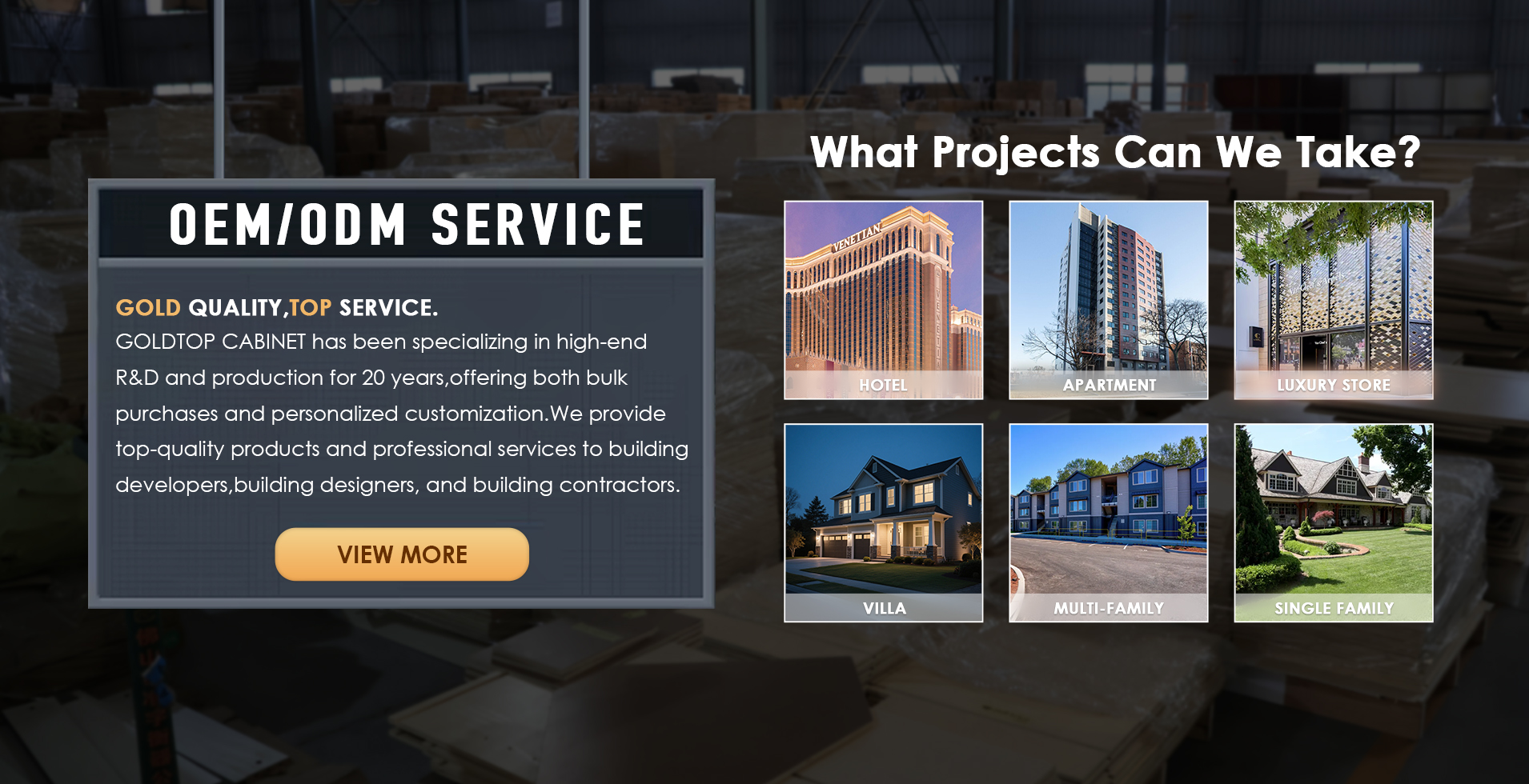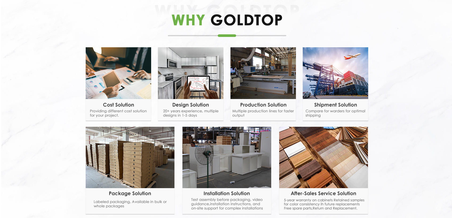 Goldtop Stone, a company specializing in integrated solutions for high-end stone and cabinet projects.